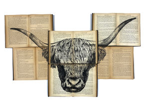 Books are all attached making the artwork act as one piece & hanging hardware is included